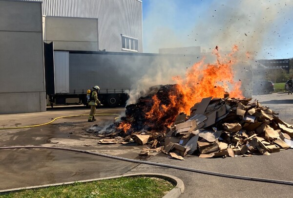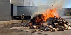 Presscontainer brennt an Lagerhalle