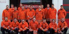 Mit einer schriftlichen Prüfung wurde der Lehrgang beendet. Von den Ausbildern nochmals ein ÂDanke an die Teilnehmer  sie urteilten: es war eine starke Truppe!Foto 1: Geschafft! Angriffstrupp nach getaner Arbeit, man beachte die GesichtsfarbeFoto 2: Geschafft! Der Lehrgang nach der schriftlichen Prüfung mit den Ausbildern Martin Friedl (rechts stehend) und Markus Kreß (rechts knieend)