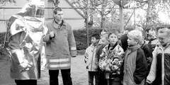 „Viele Kinder sind verängstigt, wenn sie zum ersten Mal einen Wehrmann mit Gasmaske und Axt sehen“, meint Jugendfeuerwehrwart Andreas Stiefel. Dass Wehrleute, die in ihren silbernen Einsatzanzügen wie Außerirdische aussehen, einen gefährlichen Job versehen und dabei auch Leben retten, das erfahren die Kinder von den fünf jungen Männern, die sich eigens für den Projekttag Urlaub genommen haben.