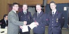 Für 25 Jahre treue Pflichterfüllung und aktive geleisteten Feuerwehrdienst wurden im Rahmen der Jahreshauptversammlung der Gesamtfeuerwehr Bad Rappenau in der Obergimperner "Krebsbachhalle" am 7. März 2003 insgesamt neuen Feuerwehrmänner mit dem Feuerwehrehrenzeichen…