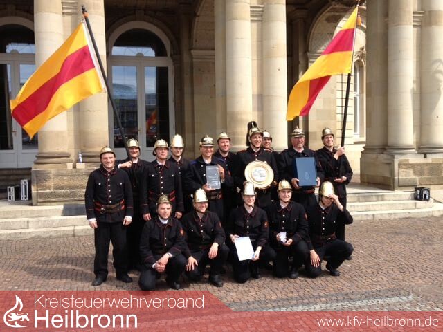 Bild: die Siegermannschaft mit dem Wanderpokal des Markgrafen von Baden. (Foto: Feuerwehr Eppingen)