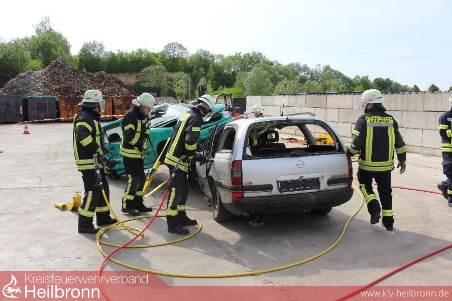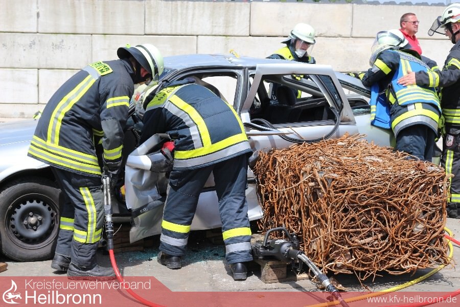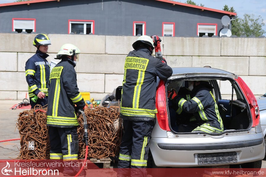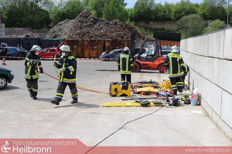Glas splittert und die Rettungsschere schneidet sich mit Leichtigkeit durchs Blech. Der Fahrer eines PKW ist in seinem Fahrzeug eingeklemmt. Feuerwehrkräfte gehen routiniert vor und nach knapp 20 Minuten ist der Patient an den Rettungsdienst übergeben. Ein Szenario wie es tagtäglich auf den Straßen der Region vorkommen kann. An diesem Tag aber zum Glück nur zu Wettkampfzwecken simuliert. Die Firma Weber Rescue Systems aus Güglingen hat auf den Schrottplatz nach Gemmingen zur „Rescue Challenge“ eingeladen. „Wir möchten mit dieser an die deutschen Meisterschaften angelehnten Veranstaltung einen Anreiz zum realistischen trainieren unter Wettkampfbedingungen geben“, so Andreas Conz vom Güglinger Rettungsgerätehersteller. „Wir nutzen die Gelegenheit hauptsächlich um etwas dazuzulernen“ sagt der Brackenheimer Tobias Link nachdem er sich zusammen mit seiner Gruppe kurz zuvor im sogenannten Rapid Szenario in nur 10 Minuten einen verunfallten Kleinwagen vornahm.