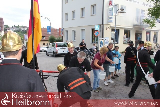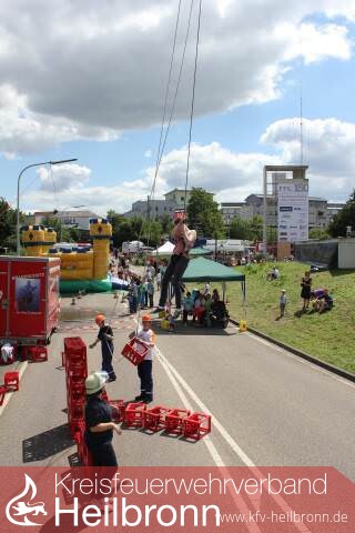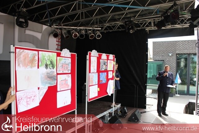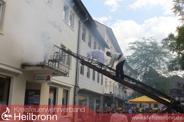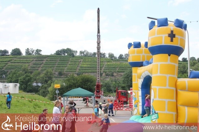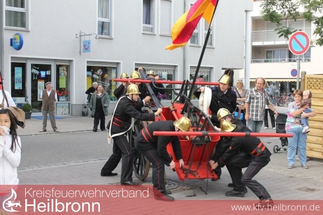Böllerschüsse der Böllergruppe des Schützenverein Lauffen a.N., eine musikalische Darbietung des Spielmannszug der Feuerwehr Ilsfeld und die historische Einsatzübung der Kameraden aus Eppingen am Vormittag des 21. Juli, sorgten schon zum Festauftakt auf dem Lauffener Postplatz für eine große Besucherzahl. Nach einem gemeinsamen Zug zum Feuerwehrhaus, konnte der Festbetrieb dann auch schon mit einem Kinder- und Jugendnachmittag beginnen. Kistenstapeln, die Hüpfburg und der Branderziehungsanhänger waren die Anziehungsmagnete der jüngeren Festbesucher. Viele handgemalte Bilder gingen anlässlich des ausgelobten Malwettbewerbs bei der Feuerwehr ein. Nicht leicht machte es sich die Bewertungskommission, bei der Ermittlung der Gewinner, welche nun Eintrittskarten in den Freizeitpark Tripsdrill erhalten.