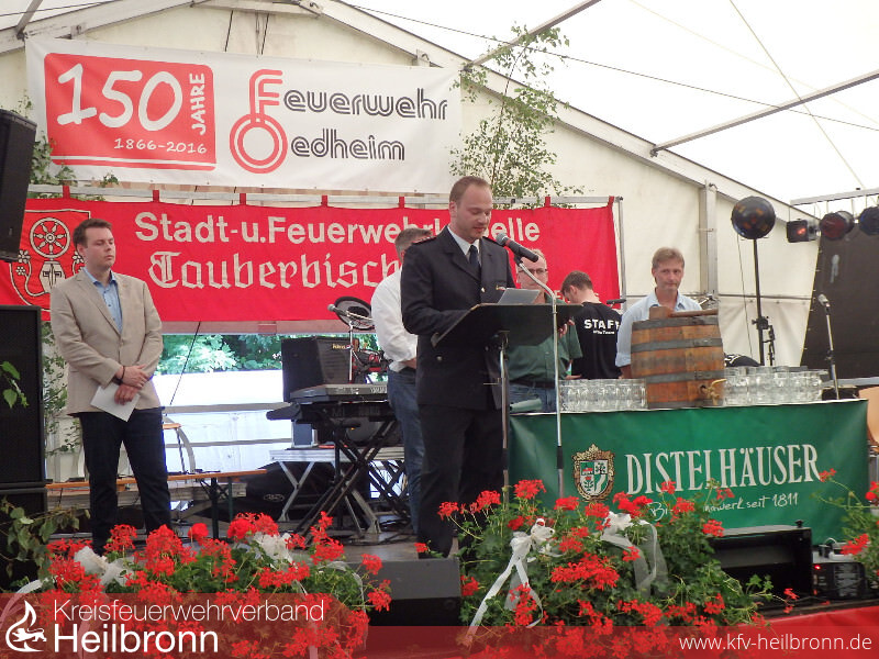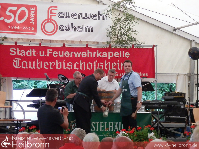Die gesamte Gemeinde Oedheim und viele Feuerwehrleute und Gäste feiern zusammen ein großartiges und emotionales Jubiläum