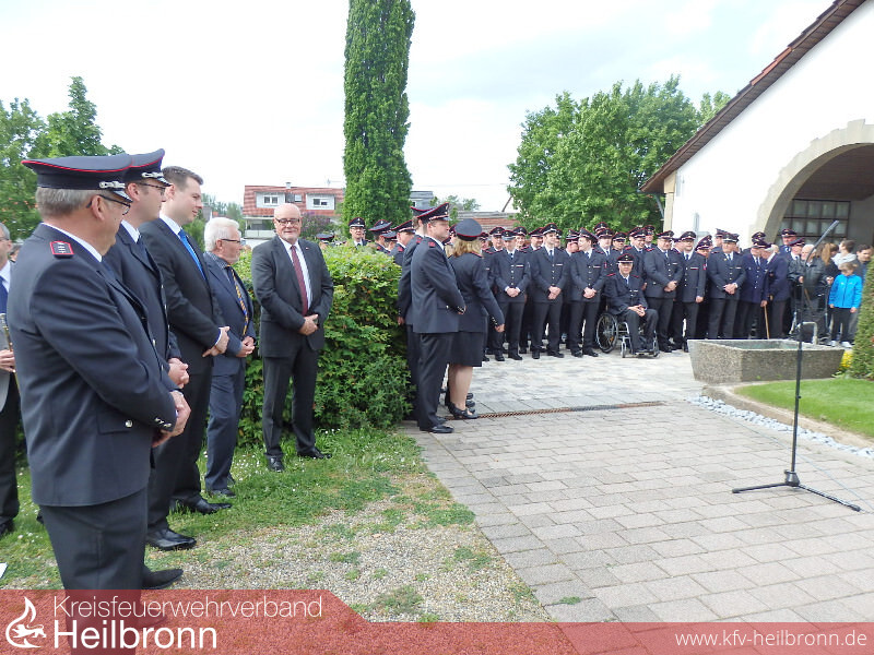 Die Glocken der St. Mauritius-Kirche läuten vergangenen Samstag den nächsten Höhepunkt zum 150-jährigen Jubiläum der Freiwilligen Feuerwehr Oedheim ein (nicht den gleichzeitigen Abstieg des VFB Stuttgart aus der Bundesliga), die feierliche Enthüllung und Weihe des neuen Gedenksteins für die verstorbenen, vermissten und gefallenen Feuerwehrkameraden der vergangenen 150 Jahre auf dem Alten Friedhof in Oedheim.