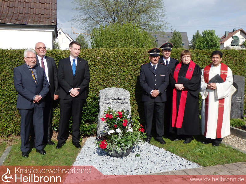 Oedheims Ev. Pfarrerin Brigitte Strobel und der Kath. Pfarrer Johny weihten mit eindrucksvollen Gebeten den Gedenkstein, der nach der Segnung mit der nachmittaglichen Sonne um die Wette strahlte. Nach „Amazing Grace“ der Bläsergruppe zeigte sich Kommandant Sven Kübler sehr erfreut, dass sich die Feuerwehrkameraden der Oedheimer Feuerwehr für den Gedenkstein als äußeres Zeichen für das Gedenken an die vielen verstorbenen, gefallenen und vermissten Feuerwehrleute aus Oedheim und Degmarn, aber auch für alle im Einsatz für die Mitmenschen und deren Hab und Gut verstorbenen FeuerwehrkameradInnen in aller Welt entschieden haben. Er dankte der Gemeinde Oedheim für den sehr schönen Platz auf dem Alten Friedhof ebenso wie Willi Faas und Franz Schuster für die Spende des Granitsteins und dessen Erstellung. Die Kameradschaftskasse sowie weitere Spenden ermöglichten, dass der Gedenkstein künftig ein Ort für das Totengedenken wird, damit die verstorbenen Feuerwehrkameraden in Erinnerung bleiben und nicht vergessen werden.