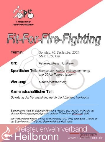 So hat im vergangenen Jahr die Heilbronner Feuerwehr sich an der Aktion ?Fit For Fire Fighting? beteiligt und den ersten Feuerwehrduathlon im Land durchgeführt.