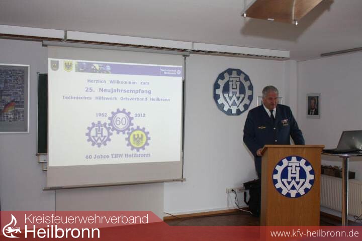 Andreas Haberer, der Ortsbeauftragte für Heilbronn, begrüßte kurz nach 11 Uhr die ca. 100 Vertreter der Behörden und Organisationen mit Sicherheitsaufgaben mit einem Grußwort. Er gab den Startschuss in ein ereignisreiches Jahr 2013, die eigentlichen Jubiläums-Festivitäten finden in diesem Jahr statt: Am 16. Juni wird im Ortsverband Heilbronn ein Hoffest mit Tag der offenen Tür und zahlreichen Attraktionen stattfinden.Dem alljährlichen Austausch der Behördenvertreter ging zunächst jedoch ein Vortrag über die Stadt Heilbronn der Kriegs- und unmittelbaren Nachkriegsgeschichte voraus. Der Leiter des Stadtarchives, Prof. Dr. Christhard Schrenk, gab einen Einblick in die Auswirkungen der Bombardierung vom 4. Dezember 1944 und den Wiederaufbau der Stadt. Das THW Heilbronn, 1952 während des Wiederaufbaus gegründet, war ebenfalls Thema seiner Ausführungen.Der THW-Präsident zollte im Anschluss dem Ehrenamt in Heilbronn großen Respekt, die Zusammenarbeit der Rettungs- und Hilfsdienste war und ist weiterhin zentraler Bestandteil der Bundesrepublik Deutschland. Er zog zudem Parallelen zwischen dem 1944 zerstörten Heilbronn und seiner eigenen Heimat Darmstadt, die ebenfalls von Angriffen der Alliierten schwer getroffen wurde.Auch der stv. Vorsitzende des Kreisfeuerwehrverbandes und Kommandant der Berufsfeuerwehr Heilbronn, Eberhard Jochim, ließ es sich nicht nehmen die Zusammenarbeit mit den Helfern in Blau zu loben. Der Ortsverband Heilbronn als zweitgrößter Standort in Baden-Württemberg, ist im Gefüge des Katastrophenschutzes zu einem wichtigen Partner der Feuerwehren geworden. Die weitere Verbesserung der Zusammenarbeit und die Verzahnung der Kompetenzen soll in diesem Jahr vorangebracht werden.Als Vertreter der Politik gaben Bürgermeister Harry Mergel und MdB Josip Juratovic ihre Grußworte an alle vertretenen Hilfsorganisationen.