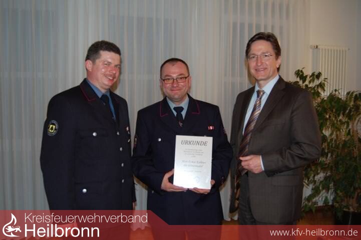Mit Danksagungen verabschiedete man die langjährig aktiv tätigen Kameraden Klaus Urban (27 Jahre Ausschussarbeit) und Werner Plieninger (23 Jahre). Ernst Kühner (16 Jahre) wurde zudem für 30 Jahre Mitgliedschaft in der Wehr von Bürgermeister Volker Schiek mit der Ehrennadel der Gemeinde Nordheim ausgezeichnet. Er scheidet nun aus der Feuerwehr aus.
