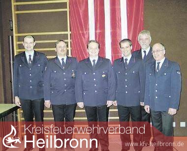 Foto: Die alte und neue Führungscrew der Weinsberger Feuerwehr (von links): Andreas Schick, Roland Wirth, Lajosch Miklosch, Michael Kolesnikow, Hans-Wilhelm Hansmann und Wolfgang Fischer. (Foto: Karin Freudenberger)