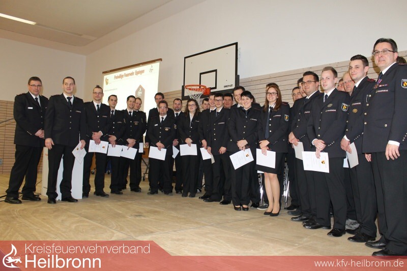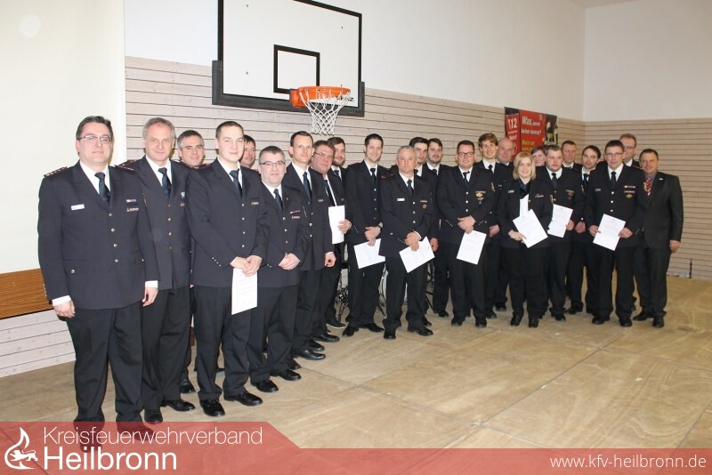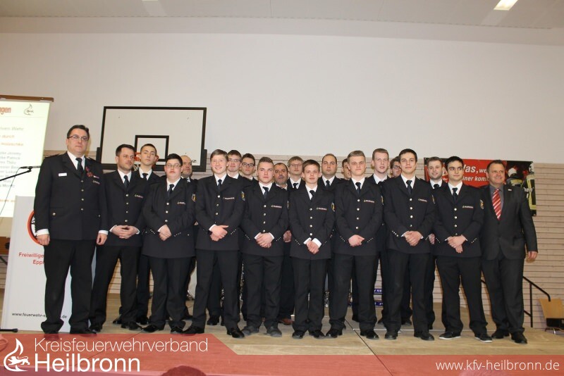 Nun gehörte die Bühne den Feuerwehrfrauen und Feuerwehrmännern bei den anstehenden Beförderungen. Nach den Richtlinien des Landesfeuerwehrverbandes BW wurden nachfolgende Wehrfrauen und Wehrmänner befördert: zum Feuerwehrmann/Frau : Abt. Elsenz, Andre von Horn, Nils Wagner, Abt. Mühlbach, Bekmezci Hamza, Daubenthaler Kai, Friederich Kai, Holtz Larissa, Koser Jan, Kress Simon, Abt. Rohrbach, Baur Jasmin. Oberfeuerwehrmann/frau: Abt. Adelshofen, Kögel AnnaâSophia, Pfeil Markus, Abt. Elsenz, Benz Patrick, Häcker Kai, Kassay Marco, Abt. Kleingartach, Krysiak Nicole, Abt. Mühlbach, Friederich Marc, Abt. Richen, Größ Heino, König Mike, Schmid Sören, Teumer Patrick, Varga Christoph. Hauptfeuerwehrmann/frau: Abt. Eppingen, Aberle Mark, Abt. Mühlbach, Abendschön Sascha, Abt. Richen, Imhof Timo. Löschmeister/in: Abt. Elsenz, Sauler Alexander, Schmidt Alexander, Abt. Eppingen, Schäfer Jens, Abt. Kleingartach, Löbe Matthias. Oberlöschmeister: Abt. Adelshofen, Hettler Andreas, Abt. Eppingen, Frank Stephan, Abt. Richen, Dech Christian. Hauptlöschmeister/in: Abt. Kleingartach, Timo Waidmann. Brandmeister/in: Abt. Mühlbach, Uwe Daubenthaler, Abt. Rohrbach, Samuel Müller. Oberbrandmeister: Abt. Eppingen, Thomas Blösch.