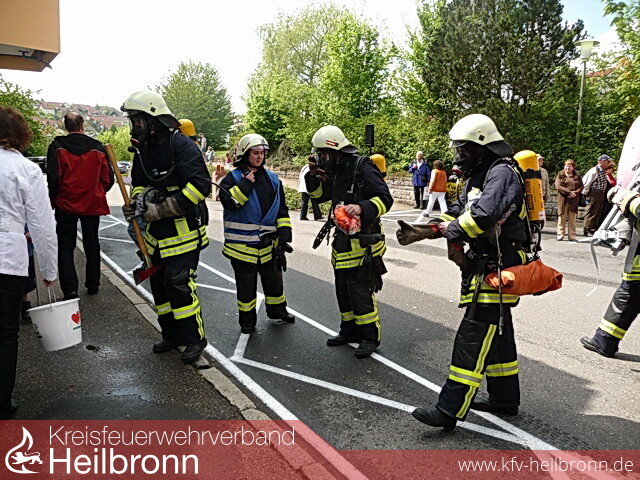 Im Rahmen der Feierlichkeiten zum 50-jährigen Bestehen des Krankenhauses Möckmühl, wurde aber auch eine Räumungs- und Evakuierungsübung, mit einem Löscheinsatz, beim „Tag der offenen Tür“ durchgeführt. Als realistisches Übungsobjekt wurde ein Patientenzimmer, welches stirnseitig am Gebäude zwischen Balkon und Nottreppenhaus liegt, vernebelt.