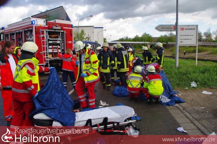Mit einem Großaufgebot an Rettungskräften haben Feuerwehr, Rettungsdienst, Polizei, Technisches Hilfswerk, Notfallseelsorger, Rettungshundestaffel und das Klinikum am Gesundbrunnen am Samstag einen realistischen Katastropheneinsatz geübt.