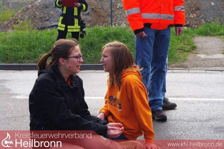 Täuschend echt geschminkte Verletzte in einem umgekippten Reisebus und einem vom Bus erfassten Renault vom Schrottplatz schrien in der Hafenstraße wild umher. Die Feuerwehr musste sich erst einmal den Weg ins Businnere freischneiden. Rettungskräfte versorgten die Opfer auf dem Asphalt, legten Kompressen, erste Infusionen und brachten die Schwerverletzten ins Krankenhaus, wo in der Unfallchirurgie neben dem Normalbetrieb die Verletztendarsteller realitätsnah an Beatmungsgeräte angeschlossen wurden.
