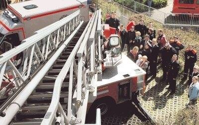 Bild 1: Im April 2008 wurde die neue Drehleiter an die Floriansjünger übergeben. Sie kam im vergangenen Jahr mehrfach zum Einsatz. Die erste Bewährungsprobe musste sie im Juni in Stetten bestehen.Fotos: Gerhard Dubinyi