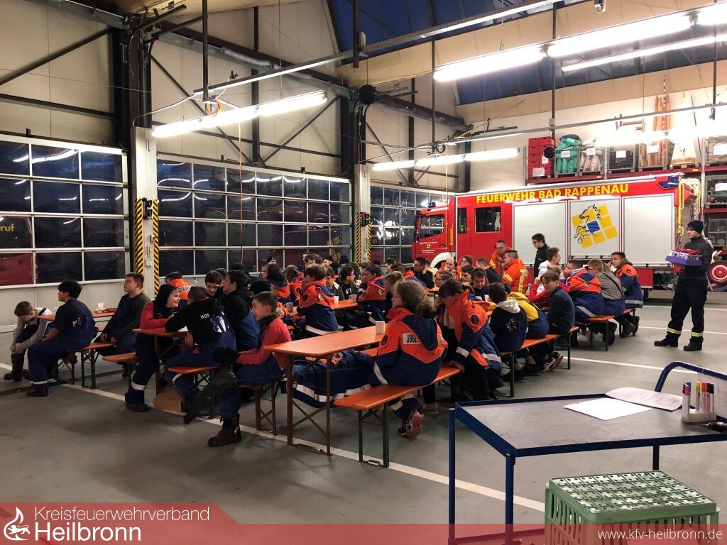 Am Samstag, den 21. Dezember 2019, trafen sich alle Jugendgruppen der Jugendfeuerwehr Bad Rappenau mit ihren Jugendgruppenleitern und Betreuern im Feuerwehrhaus Bad Rappenau. Die alljährliche Verteilung der Abfallkalender in der Kernstadt stand wieder an. Nach einer kurzen Begrüßung durch den Stellvertretenden Jugendwart Mathias Borth konnten die zuvor eingeteilten Teams direkt starten. Während die einzelnen Gruppen mit Betreuern zu Fuß unterwegs waren, wurde im Feuerwehrhaus das große Abendessen bereits vorbereitet.