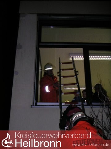 Rauch hatte sich schon vor dem Klassenraum ausgebreitet, in dem sich noch Kinder bei einer Flöten-AG befanden, die dann über eine Steckleiter von einer weiteren Gruppe unter Gruppenführer Ralf Behringer gerettet wurden. Zeitgleich wurde eine Riegelstellung zwischen Schule und städtischem Kindergarten aufgebaut, da dieser durch starken Funkenflug gefährdet war.