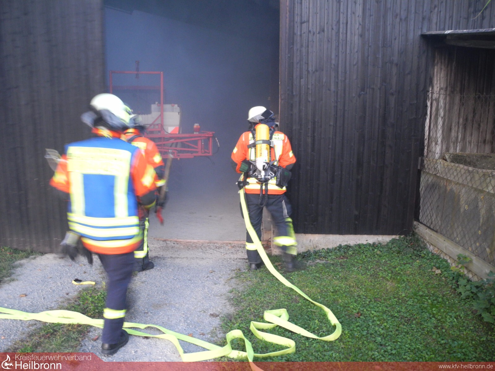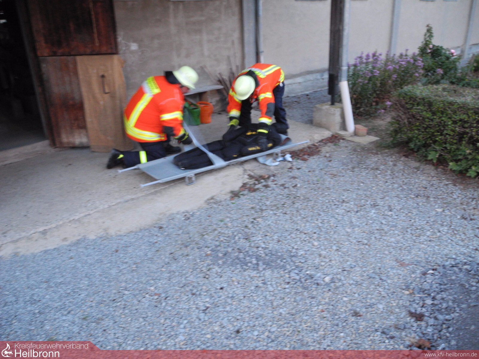 Am Montag, den 25.09.16 haben sich die Kameraden der Abt. SÜD zu einer gemeinsamen Übung um 19:30 Uhr in Treschklingen getroffen. Kamerad Rainer Köhl stellte dankenswerter Weise sein landwirtschaftliches Anwesen als Übungsobjekt zur Verfügung. Als Lage war der Brand in einer Scheune durch Schweißarbeiten angenommen, eine Person wird noch im Gebäude vermutet. Nachdem die Löschfahrzeuge aller 3 alt Abteilungen vor Ort waren stand natürlich auch genügend Personal für unterschiedlichste Aufgaben bereit. Durch 2 Trupps wurde unter Atemschutz die stark verrauchte Scheune abgesucht. 1 Sicherungstrupp stand bereit. Von weiteren Kameraden wurde eine Riegelstellung zu Wohnhaus aufgebaut. Dass die Einsatzstelle aufgrund der Tageszeit ausgeleuchtet werden musste versteht sich von selbst. Freie Kameraden führten an einer Übungsstation mit der Steckleiter anleiter Übungen durch. Nachdem die vermisste Person gefunden, betreut und dem Rettungsdienst übergeben wurden war eine weitere Übungsstation für die Atemschutzgeräteträger (AGT) geplant. Mit den AGT wurde die Vorgehensweise beim Absuchen größerer Räume besprochen und geübt. Im Anschluss an die Übung stand im Feuerwehrhaus Treschklingen noch ein Vesper bereit.