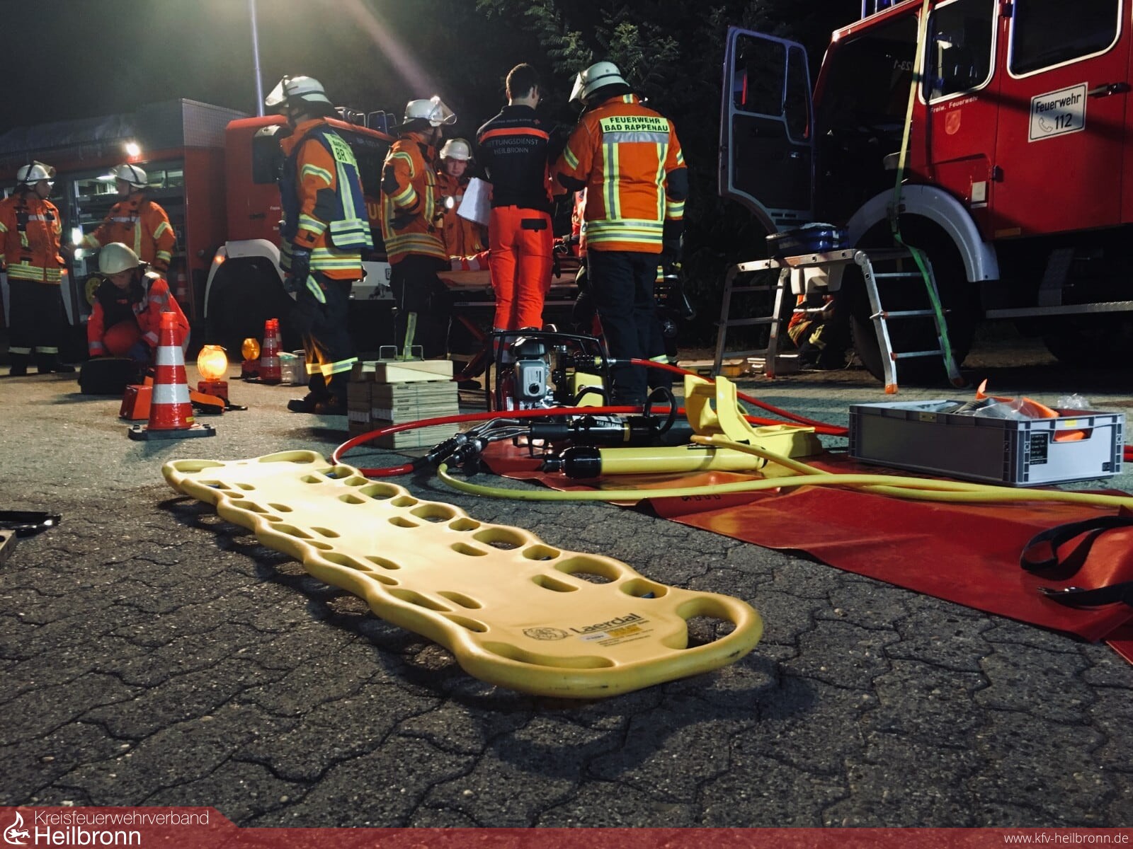 Die Übungslagen bestanden aus einem PKW-Unfall auf den Rädern, zwei LKW-Unfällen sowie einem PKW-Unfall in Seitenlage.