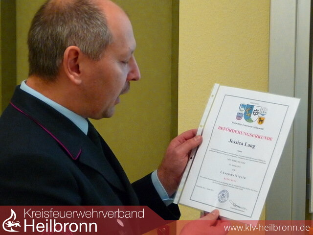 Bilder: Zahlreiche Lehrgangsurkunden und damit verbundene Beförderungenkonnten bei der Abteilungsversammlung in Möckmühl übergeben werden.Sie zeigen den hohen Ausbildungsstand und die große Bereitschaft zurWeiterbildung der Einsatzkräfte. (Foto: Feuerwehr Möckmühl)