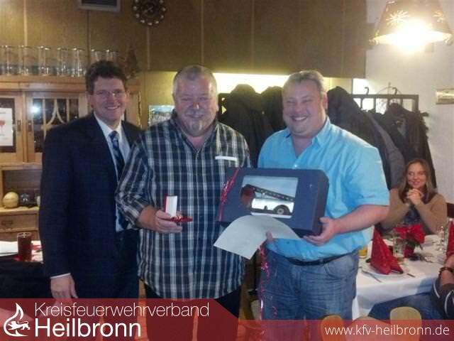 Im Anschluss berichtete der Kassier der Abteilung, Michael Schimpl, über die Ein- und Ausgaben der gut betreuten Kameradschaftskasse. Mit einem guten Plus konnte er die Finanzen seinen Kassenprüfern André Sandrisser und Denys Wittmann vorlegen, die ohne Wenn und Aber eine korrekte Buchführung nachgeprüft hatten. Michael Schimpl konnte gleichzeitig noch für seine 25jährige Mitgliedschaft in der Freiwilligen Feuerwehr Neudenau geehrt werden. Er bekam von Abteilungskommandant Reinhardt und Bürgermeister Hebeiß das Feuerwehrehrenzeichen in Silber überreicht.