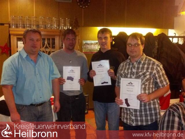 Nachdem die vielen Zahlen von Sven Reinhardt in interessanter Weise vorgetragen wurden, nahm er die Beförderungen vor. Marcel Holder wurde zum Feuerwehrmann ernannt, Mario Brandt zum Oberfeuerwehrmann und Felix Winterholler zum Hauptfeuerwehrmann.