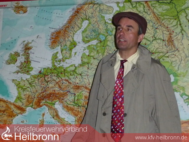 Anschließend wurde die in bester Stimmung befindliche Gesellschaft durch einen mittlerweile eingetroffenen Weltenbummler auf eine Weltreise entführt. In den jeweiligen Landessprachen wurden von ihm sehr gekonnt seine Urlaubserlebnisse erzählt und dabei die Lachmuskeln der Besucher auf das Äußerste strapaziert. Auch hier gab es wiederum eine Steigerung als er im jeweiligen Dialekt von seiner Deutschlandreise berichtete.
