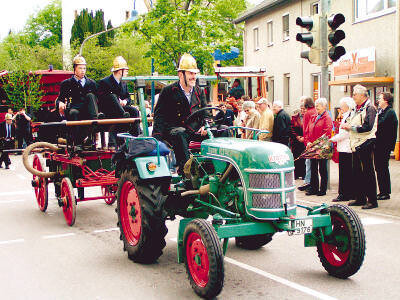 Lange Zeit zogen die Wehrmänner Spritzen und Schläuche mit ihren Schleppern. Beim Umzug in Untergruppenbach waren viele historische Gefährte zu sehen. (Fotos: Ute Knödler)