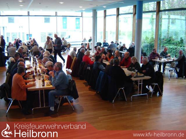 Zur Begrüßung traf man sich in der Kantine der Möbelfirma VS. Diese ist eine der größten und ältesten Industriebetriebe der Stadt. Tauberbischofsheims Bürgermeister Wolfgang Vockel, der Kreisbrandmeister des Main-Tauber-Kreises Alfred Wirsching sowie deren Altersobmann Willy Schäffner ließen es sich nicht nehmen, den Besuch aus dem Kreis Heilbronn rund um Altersobmann Werner Kümmerle persönlich zu begrüßen.
