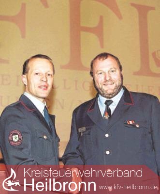 Bild 2: Kommandant Heiner Schiefer (rechts) ehrt Michael Schaaf.