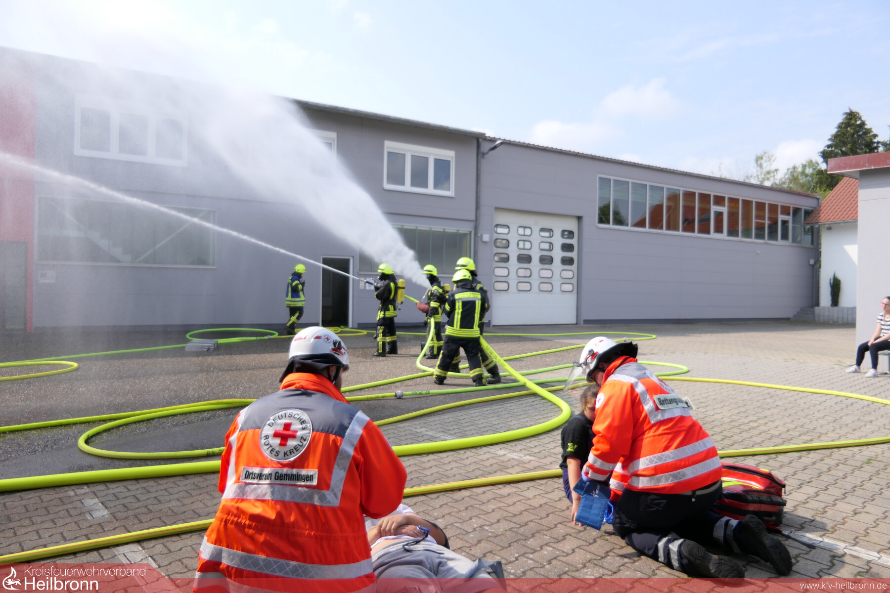 Am Sonntag, 22. Juli 2018 fand die diesjährige Hauptübung der Feuerwehr Gemmingen und des DRK Ortsverein Gemmingen bei der Firma Kränkel Elektro GmbH & Co. KG in der Industriestraße in Gemmingen statt. Pünktlich um 10:15 Uhr gingen die Funkmeldeempfänger mit dem Alarmstichwort „Industriehallenbrand“. Es wurde angenommen, dass eine Gasheizung im Lager in Brand geraten ist und die Flammen bereits auf eine angrenzende Werkstatt übergriffen.