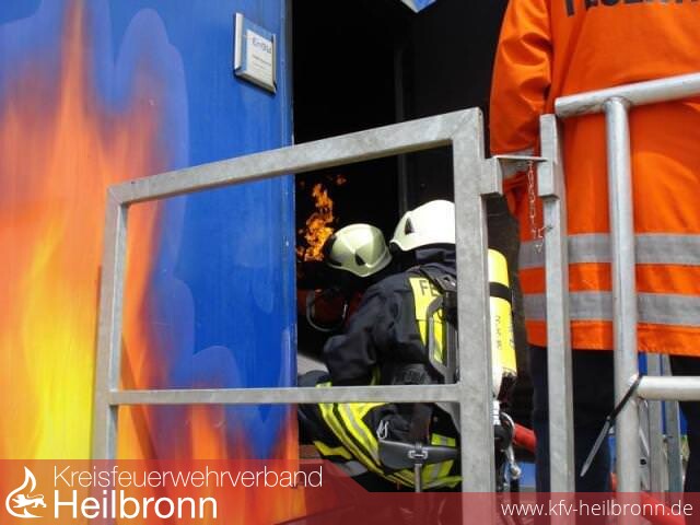 Am vergangenen Samstag hatte eine größere Gruppe der Atemschutzträger unserer Wehr Gelegenheit, auf der Brandübungsanlage der EnBW zu üben. Diese Anlage war bei der Freiw. Feuerwehr Güglingen aufgestellt. Auf dieser Anlage, die von der EnBW angeschafft und betrieben wird, kann ein Innenangriff der Atemschutzträger mit mehreren Brandstellen bei starker Rauchentwicklung und sehr hohen Temperaturen sehr realitätsnah geübt und trainiert werden. Eine Gelegenheit, die ansonsten zu Übungszwecken so nicht gegeben ist.