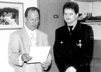 So war allen Wehrmännern der Ausflug nach Thüringen noch in allerbester Erinnerung. Schließlich dankte Kommandant Günter Fahrbach Bürgermeister Schille für dessen 32 Jahre währende Fürsorge für die Wehr. Er hob hervor, dass Schille den Bau des Feuerwehrgerätehauses im Jahre 1993 sowie die Beschaffung von Fahrzeugen und weiterem technischen Gerät tatkräftig unterstützte.