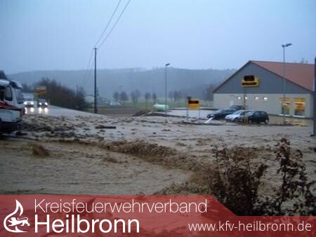 Beim Netto-Markt und an der Tankstelle Lott in Neudenau stand zeitweise alles unter Wasser. „Das kann man sich gar nicht vorstellen“, sagt Sabrina Lott. Gestern hat eine Spezialfirma die Autowaschanlage vom Schlamm befreit. Ein Lkw der Firma Söhner ist vom herabstürzenden Wasser beschädigt worden. Die Netto-Kunden haben ihre Autos schnell vom Parkplatz gefahren.