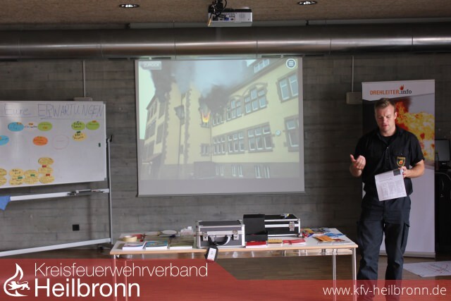Der Lehrgangsstoff den Ausbilder Thöne mit hervorragendem methodischem und didaktischem Können an die örtlichen Multiplikatoren vermittelte, beinhaltete unter anderem die Theorieteile Übungsvor – und Nachbereitung, das Aufstellen und der Einsatz von Hubrettungsfahrzeugen nach der Hindernisse Abstände Untergrund Sicherheit-Regel und die Vermittlung von Fachthemen an die örtlichen Drehleitermaschinisten. Praktisch waren die Teilnehmer mit dem Abhalten von Lehrproben aber auch mit den Einsatzmöglichkeiten der Lauffener Drehleiter an verschiedenen Lauffener Bauwerken, wie z.B an den Silotürmen der Firma Märker Zement und anderen Gebäuden gefordert.