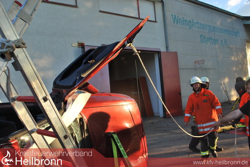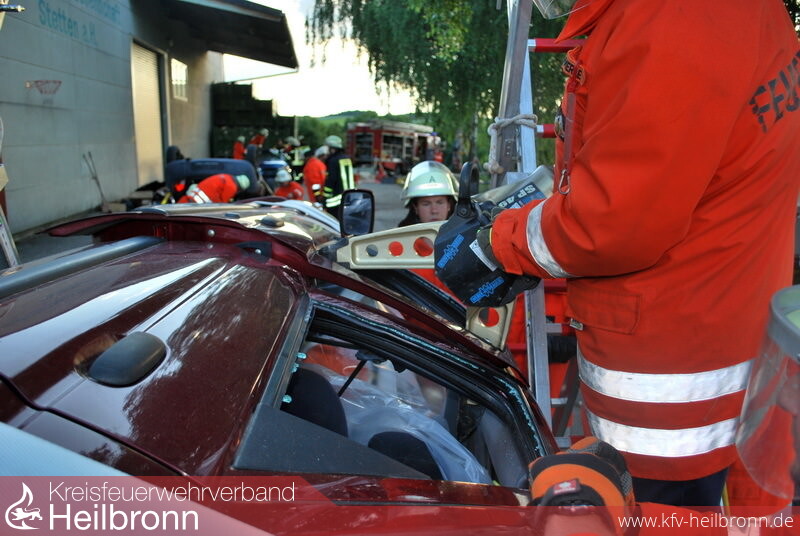 Mit Reiner Stuber von der Fa. Weber konnte ein erfahrener Ausbilder für eine zweitägige Ausbildung bei der Abteilung Stetten a.H. zur patientengerechten Rettung aus verunfallten Fahrzeugen gewonnen werden.
