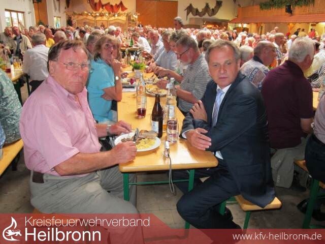 Eine hohe Wertschätzung erbrachte Reinhold Gall, seines Zeichens Innenminister im Land Baden Württemberg den Alterskameraden. Er, der nach wie vor Vorsitzender des Kreisfeuerwehrverbandes Heilbronn ist, lies es sich nicht nehmen trotz Termindrucks nach der dreitägigen Konferenz der Innenminister in Frankfurt bei seinen Feuerwehrkameraden aufzukreuzen.