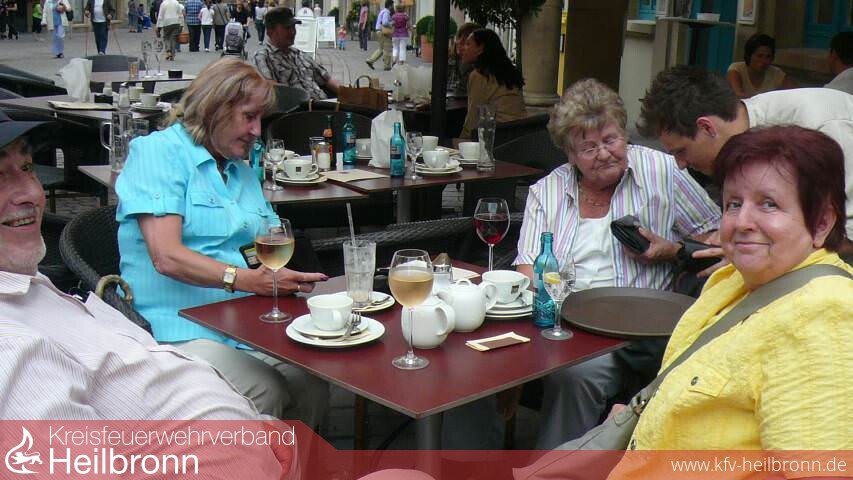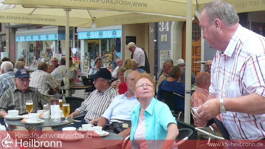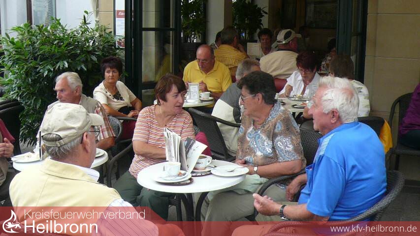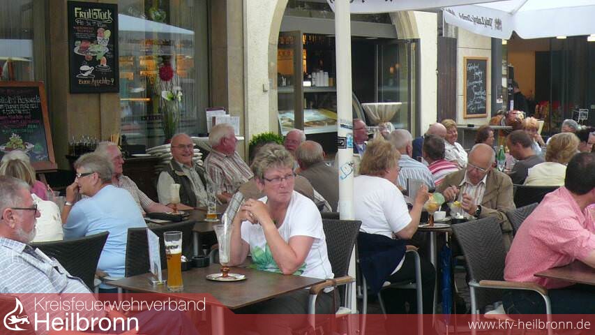 Zu einem kurzweiligen Bummeln lud die Fußgängerzone in der Altstadt ein. Zahlreiche Straßencafés rund um den Marktplatz platzten aus allen Nähten. Bei einem Kaffee oder Bierchen genossen viele die trockenen Minuten im Freien, bevor kurz vor der Weiterfahrt schauerartige Regenfälle dem kurzweiligen Treiben ein Ende bereiteten. Die meisten konnten trockenen Fußes in die Busse bei der nahe gelegenen Feuerwehr Windenden zur Weiterfahrt einsteigen.