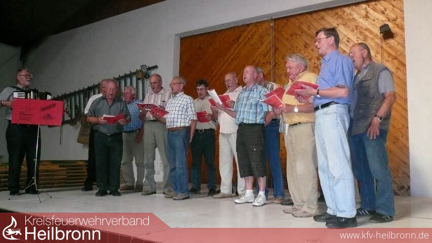 Der Feuerwehrchor aus Bad Wimpfen trug mit Feuerwehrliedern zur Stimmung bei. Es waren zwar nicht die Fischer Chöre, aber Rudi Fischer gab den Takt mit dem Akkordeon vor. Nach dem Kufsteinlied und einem letzten Muß i denn, muß i denn zum Städele hinaus traten die sieben Busse zur Heimreise an.
