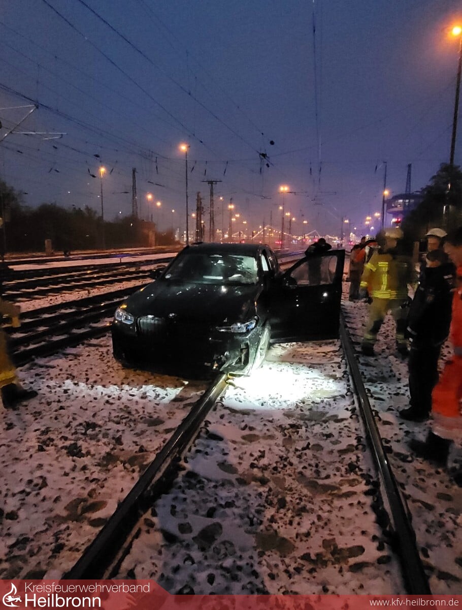 Irrfahrt in Heilbronn: Auto aus Gleisbett befreit