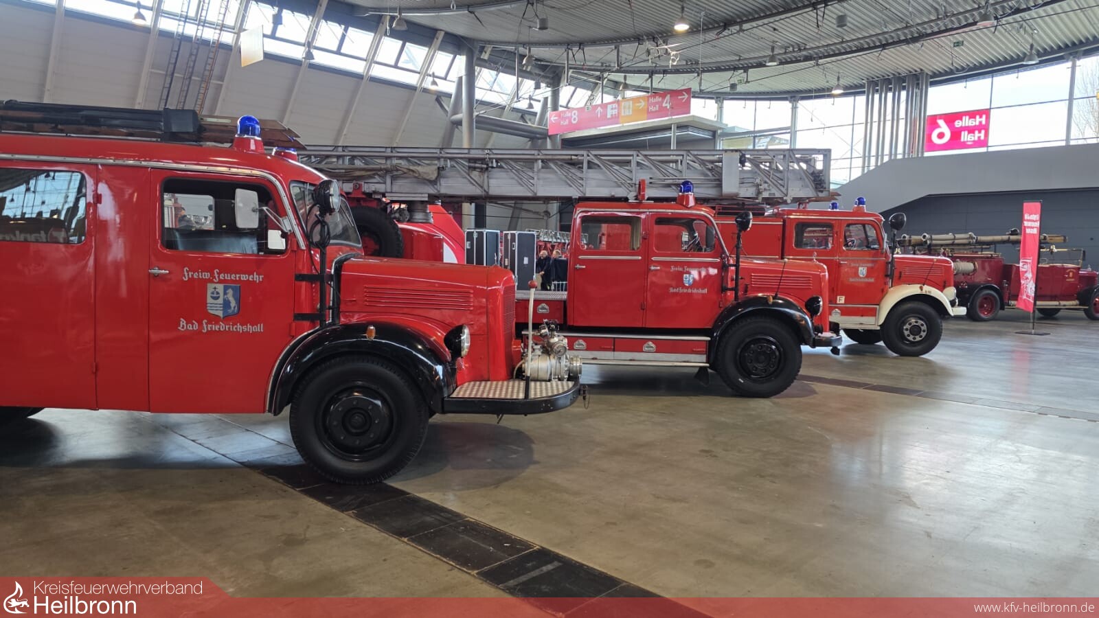 Am Mittwoch fuhren die drei Oldtimer auf eigener Achse zum Messegelände nach Stuttgart. Gemeinsam wurde die Ausstellungsfläche in Halle 6 bezogen und aufgebaut. Dann folgten vier Tage Messe. Täglich waren drei bis fünf Feuerwehrangehörige der Oldtimergruppe im Alter von zwanzig bis fünfundsiebzig Jahren am gemeinsamen Messestand und an unseren Fahrzeugen mit Rat und Tat tätig. Viele Fragen zu Feuerwehr, Fahrzeug und Technik, leuchtend strahlende Gesichter der Besucher und Messeaussteller, interessante Gespräche, Austausch in Wort und Material dazu auch interessantes zu unserer Stadt Bad Friedrichshall. Immer wieder auch im Zusammenhang mit der früher in Bad Friedrichshall ansässigen Feuerwehrgerätefabrik und Glockenhersteller Gebrüder Bachert.