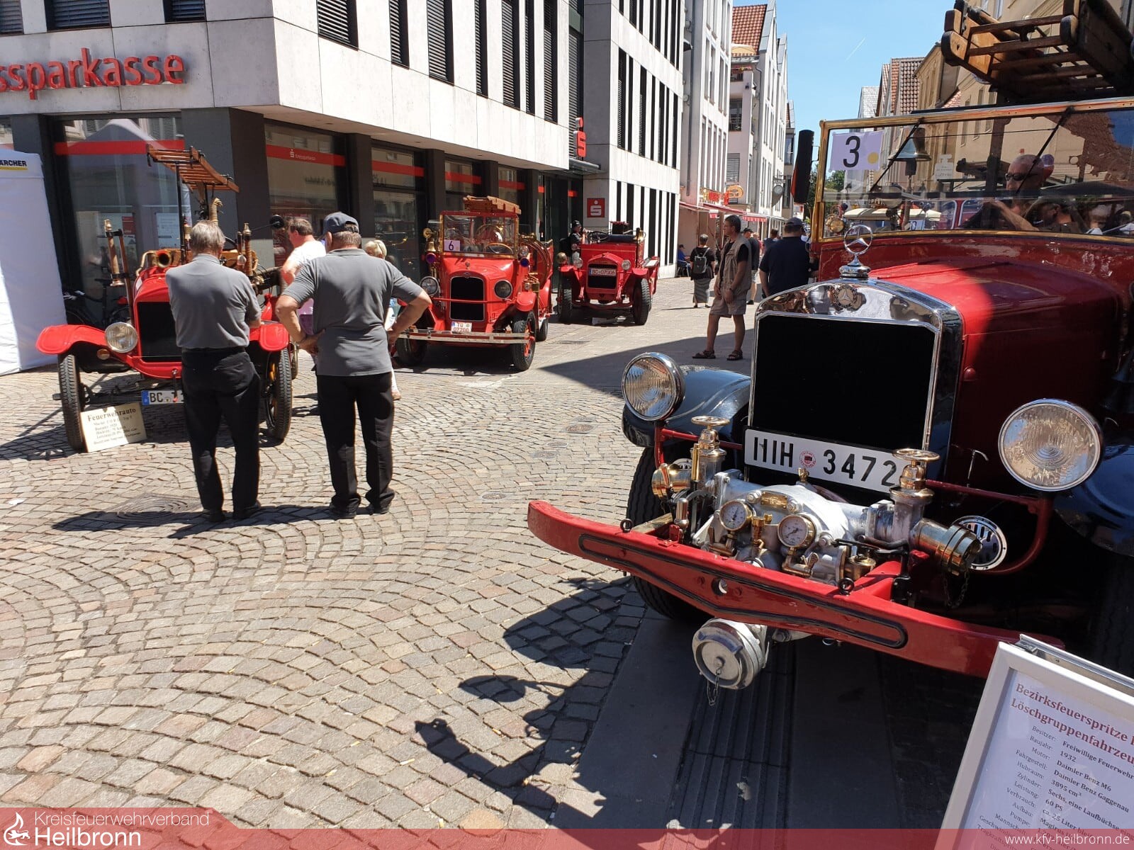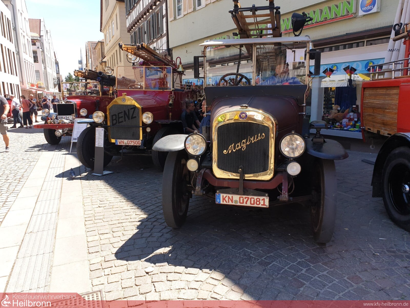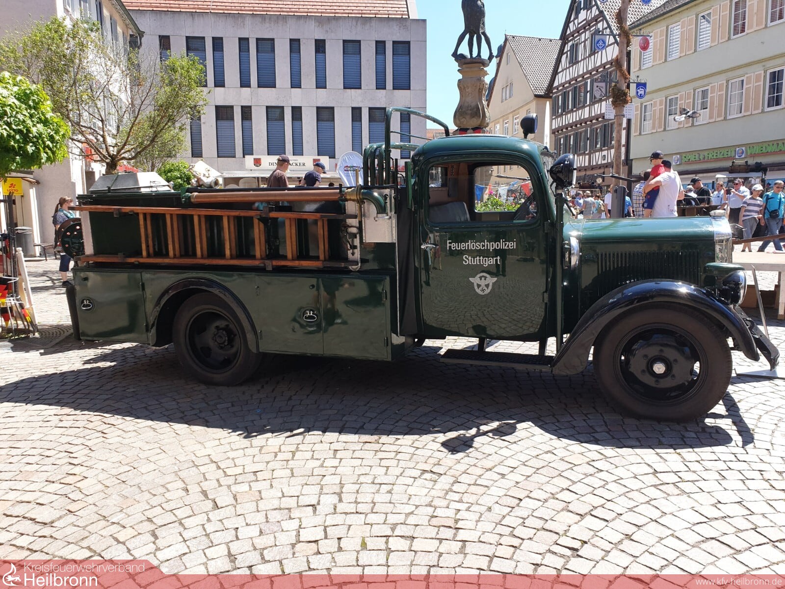 Am ersten Wochenende im Juni nahmen auch wir wieder am diesjährigen Landesfeuerwehr-Oldtimertreffen teil. Diesjähriger Austragungsort für das Oldtimertreffen und Wettbewerb für historische Handdruck-Feuerspritzen ist Winnenden. Am Sonntag erreichten wir vormittags den Treffpunkt beim Feuerwehrmuseum. Nach Anmeldung und Bildtermin gab es ein kleines Frühstück. Die teilnehmenden Fahrzeuge wurden in verschiedene Epochen und Typen eingeteilt. So wurden sie nacheinander in die Altstadt geleitet. Wir wurden zum Schluß abgerufen und fanden unseren Aufstellort am Zugang zur historischen Innenstadt. Ungefähr 90 Feuerwehroldtimer aus verschiedenen Epochen zeugten von der Entwicklung des Brandschutzes, der Technik und der Motorisierung im Feuerwehrwesen. Bad Friedrichshall stellte einen von drei angereisten Löschzüge aus und präsentierte somit Stadt und Feuerwehr. Sicherlich gibt es noch mehrere, aber ein historischer Löschzug ist heute noch seltener als damals.