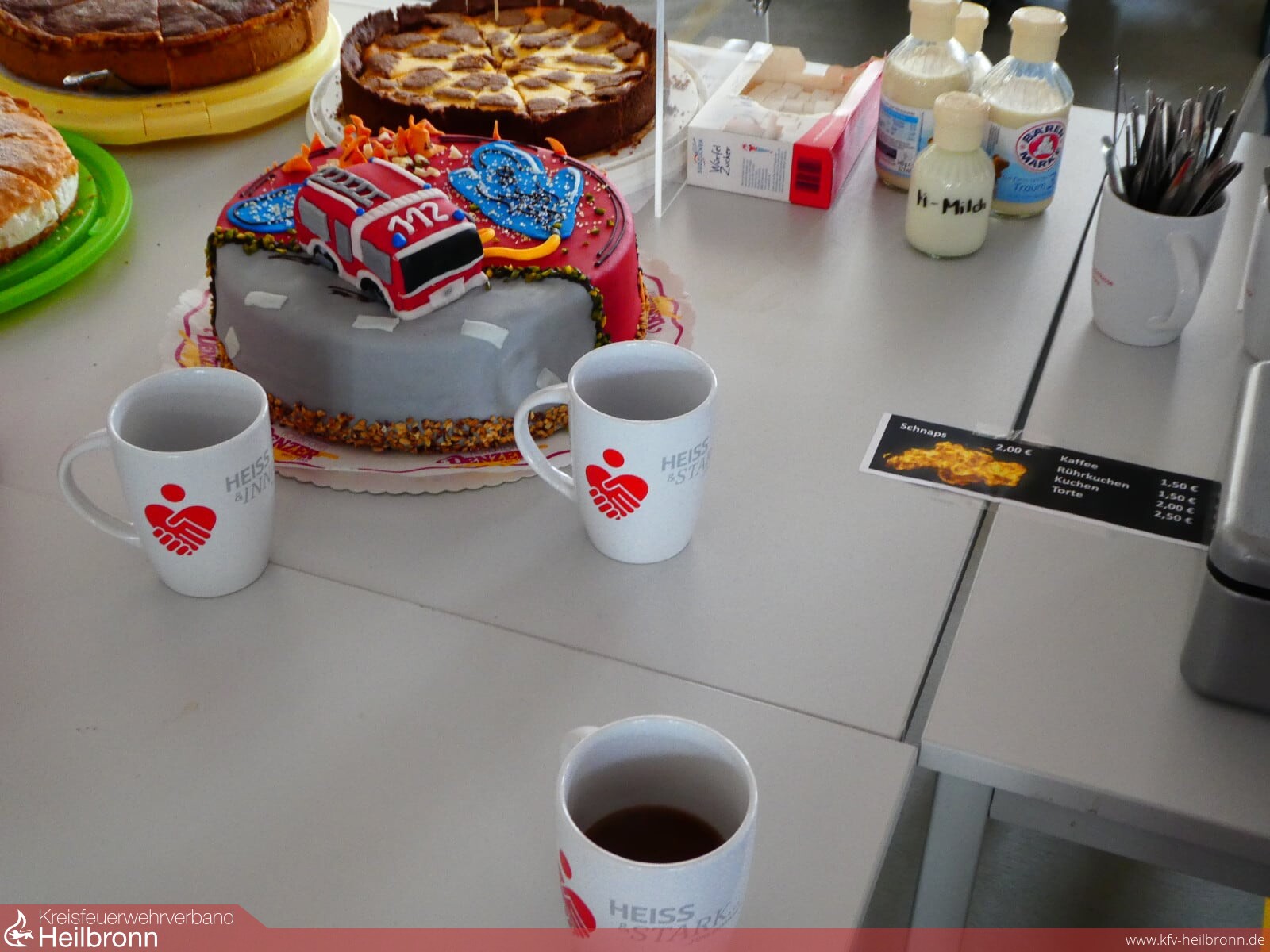 Die begleitenden Eltern und natürlich alle übrigen Besucher hatten derweil die Gelegenheit, das umfangreiche kulinarische Angebot und den beliebten Mittagstisch zu genießen. Auch das mit 35 selbstgebackenen Kuchen sehr gut bestückte und von der Altersabteilung hervorragend betreute Kuchenbüfett fand reisenden Absatz. Dabei kamen zum ersten Mal auch die neuen Ehrenamts-Tassen zum Einsatz. Die Kreissparkasse Heilbronn hatte aus Nachhaltigkeitsgründen unter ihren ehrenamtlich tätigen Mitarbeitern 10 x 200 dieser schönen Ehrenamts-Tassen verlost. Eines dieser Lose traf die Freiw. Feuerwehr Oedheim, wo diese tolle Aktion sehr wohlwollend zur Kenntnis genommen wurde.