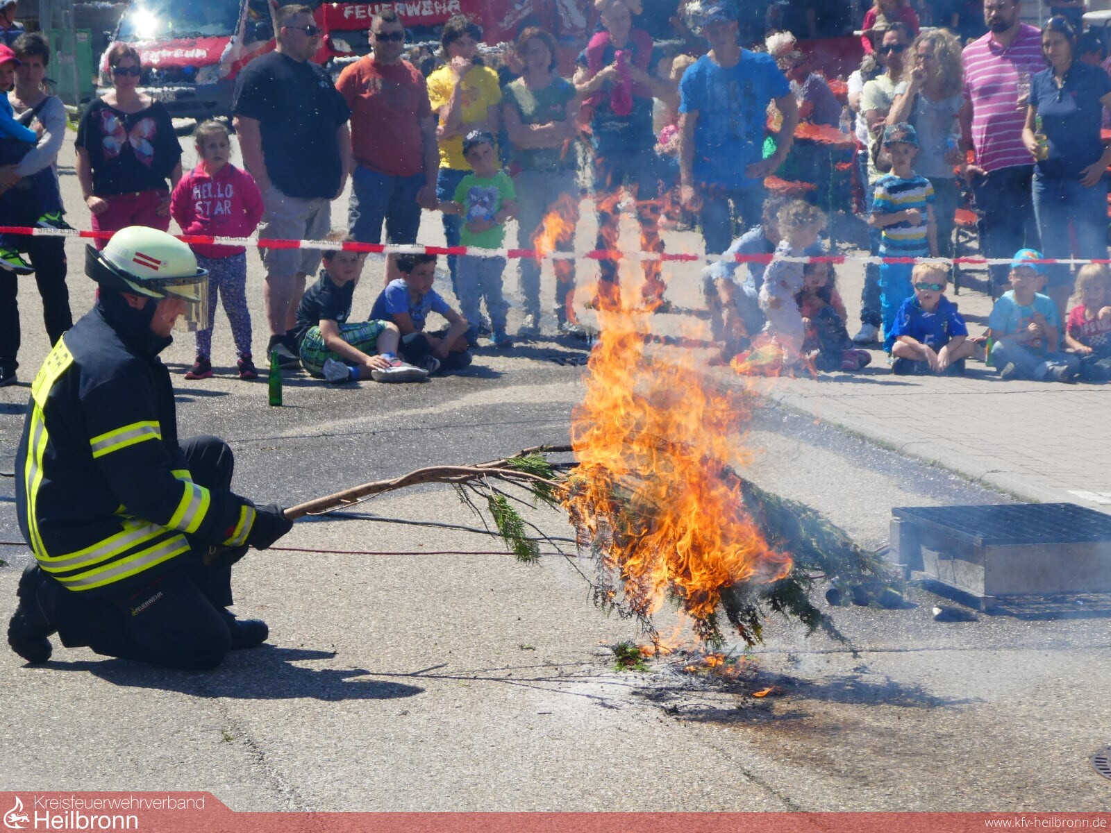 Auf großes Interesse sind auch die feuerwehrtechnischen Vorführungen gestoßen. Gute und auch nicht zu empfehlende Löschversuche für brennenden Fett in der Küche, explodierende Spraydosen und leicht entflammbare Nadelgehölze helfen den vielen Zuschauern, die richtigen, aber hoffentlich nicht notwendigen Löschmaßnahmen im Haushalt und im Alltag zu treffen. Damit wurde beim Tag der offenen Tür der Oedheimer Feuerwehr nicht nur die Leistungsfähigkeit und Einsatzbereitschaft präsentiert und gut gespeist, sondern auch nützliche Hinweise in Sachen Brandschutz mit auf den Heimweg gegeben.