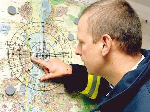Bild 2: Mit Hilfe einer Drehscheibe kalkuliert die Wehr in der Einsatzzentrale, wie weit sich das Gas je nach Windrichtung ausbreiten kann. (Fotos: Rabea Sattar)
