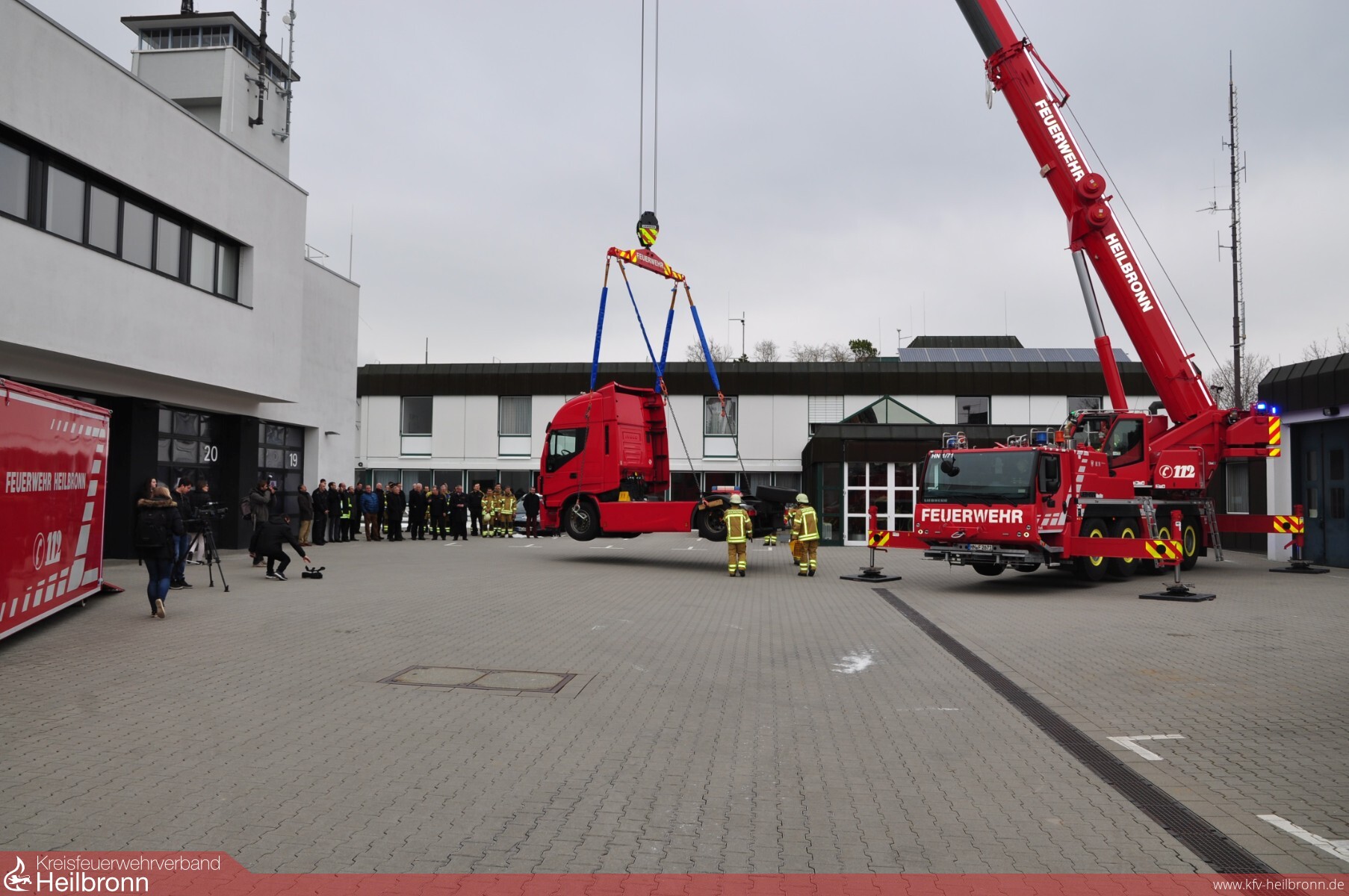 Der neue mobile Kran der Feuerwehr Heilbronn ist ein echter Allrounder: Mit seinem bis zu 50 Meter langen Ausleger kann er Lasten bis zu 38 Tonnen anheben, aber auch Personen im Rettungs- und Arbeitskorb aus Gebäuden retten. Darüber hinaus kann er zum Löschen von Großbränden eingesetzt werden und einiges mehr. Am Montag wurde der Kran offiziell in Dienst gestellt.