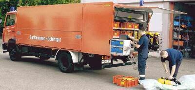 Kostspielig war auch die Beschaffung des Fahrzeugs. Im Jahr 1996 musste der Landkreis 380 000 Mark aufbringen, um den Gerätewagen zu kaufen. Das Fahrzeug hat alles drauf, was man zum Auffangen, Abdichten und Umpumpen von gefährlichen Stoffen benötigt, beschreibt Jochen Wengert die Ausrüstung mit über 300 Einzelteilen.