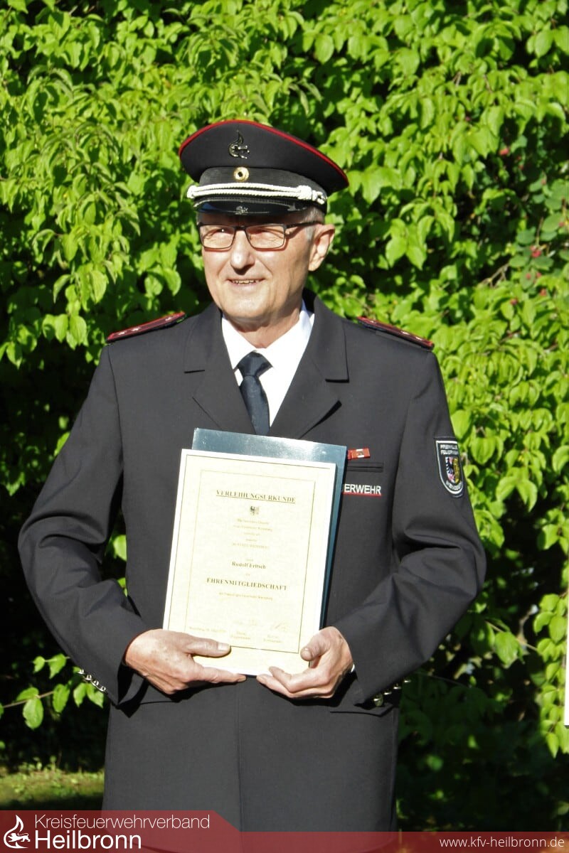 Aufgrund seines überdurchschnittlichen Engagements und seiner besonderen Verdienste als Ausbilder und Führungskraft in der Freiwilligen Feuerwehr Weinsberg, wird Rudolf Fritsch der Titel des Ehrenmitglieds verliehen.