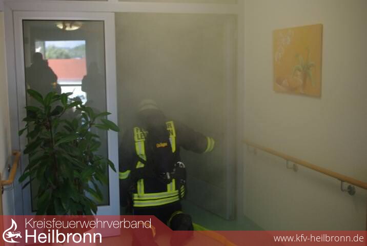 In den Zimmern warten Patienten auf Rettung. Sie müssen zusammen mit ihren Beatmungsgeräten aus dem Haus gebracht werden. Keine leichte Aufgabe für die 40 Wehrmänner. "Die Beatmung muss absolut gesichert sein, denn ohne die Maschine sind die Personen innerhalb von sechs Minuten tot", sagt der leitende Notarzt Georg Breuer, der mit Helfern der DRK-Ortsgruppen Leingarten und Brackenheim vor Ort ist.