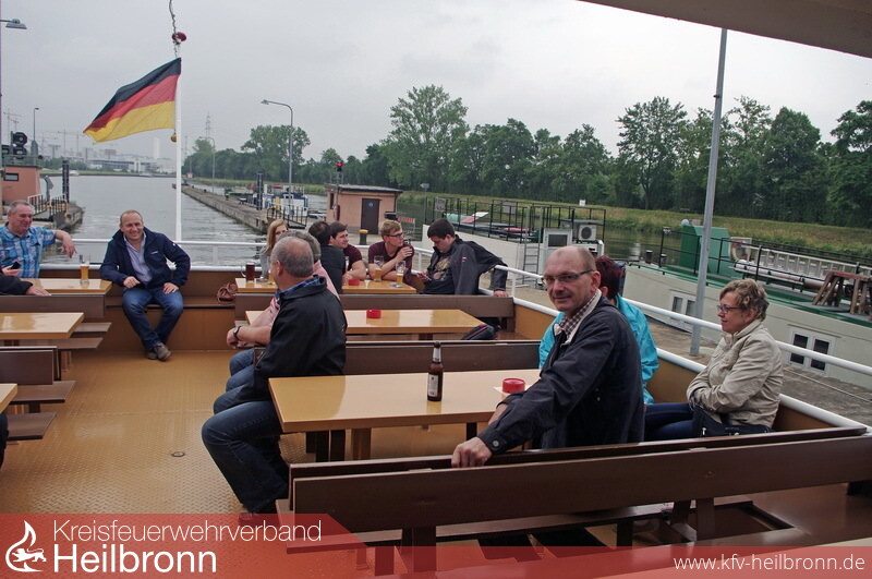 Am Samstag ging es zu einem Ausflug ins Neckartal. Mit dem Neckarbummler ging die Schifffahrt von Heilbronn nach Gundelsheim. Die Fahrt durch zwei Schleusen und vorbei am AUDI-Werk und der Stauferstadt Bad Wimpfen beeindruckte die Gäste. Nach dem Mittagessen in Gundelsheim ging es zurück nach Heilbronn. Feuerwehrkamerad Markus Wetteskind führte die Pöndorfer durch die Heilbronner Hauptfeuerwache. Vor allem die großen Sonderfahrzeuge beeindruckten die österreichischen Feuerwehrkameraden.